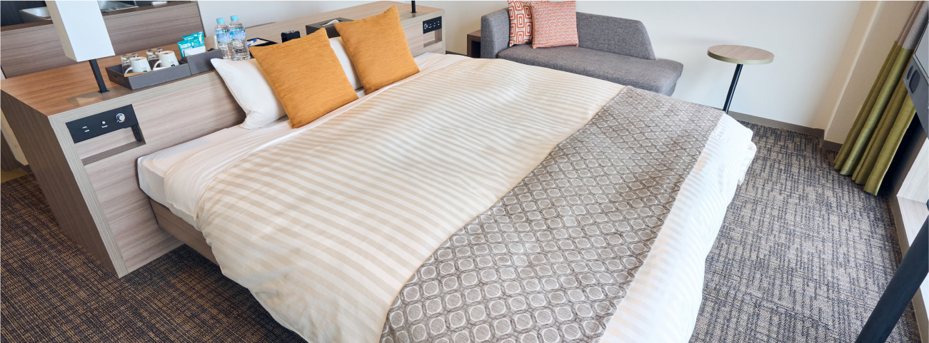 ゆったりとしたベッドを備えた客室でございます。